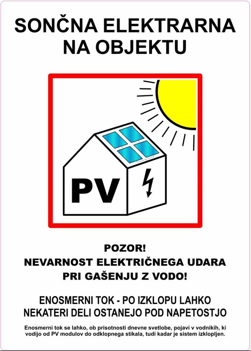 Opozorilna nalepka ˝Sončna elektrarna na objektu˝
